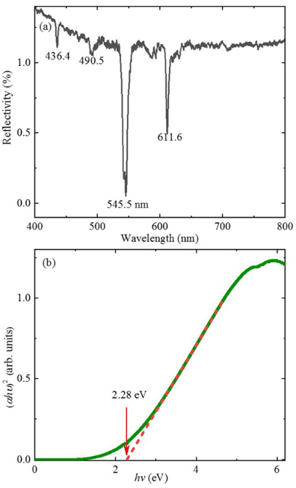图3.SCFO的光学性质,展示了直接带隙半导体特征,带隙约为2.3 eV