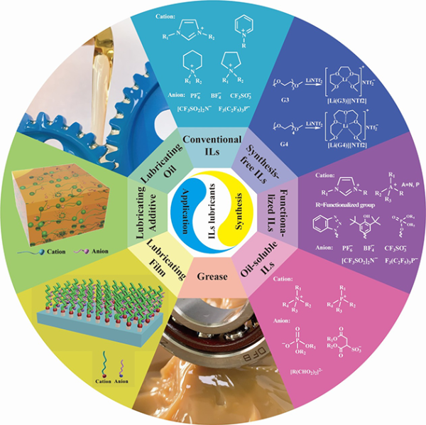 离子液体是理想润滑剂的模型化合物,人们可将化学设计的灵活性用于工程应用。该离子液体润滑剂的评述是一篇跨学科的论文,涉及合成化学、摩擦学和物理化学。文章介绍了如何利用合成化学为摩擦学服务,通过灵活的分子设计合成新型高性能润滑剂。通过阅读该文章,合成化学家可以清楚了解使用哪些元素和分子结构以更好地进行机械工程润滑抗磨的应用。文章指出必须从物理化学和表界面的角度来解释其润滑抗磨作用机理,离子液体分子在运动界面摩擦/组装、黏度变化和摩擦诱发的化学反应决定了其润滑抗磨性能。