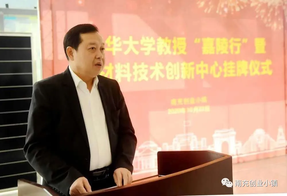 南充市委常委、嘉陵区委书记廖伦志为新材料技术创新中心揭牌并讲话,区委副书记、区长史燚主持仪式。
