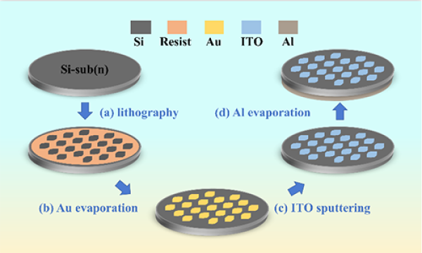 图1. ITO/Au/n-Si 肖特基光电探测器工艺流程示意图