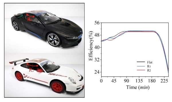 图2.可拉伸柔性无线充电方案应用于不同型号汽车