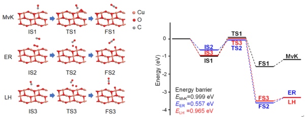 图1. CO在理想CuO(111)表面三种机理势能面