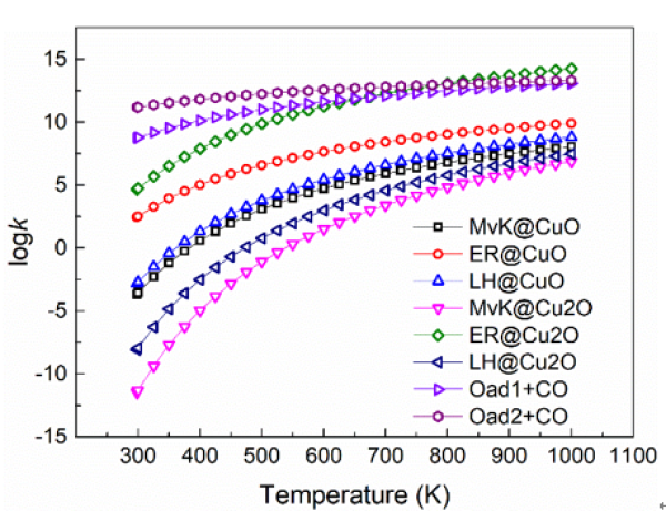图2.CO在CuO(111)表面的反应动力学参数
