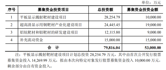 对于本次发行的目的,阿石创表示,经过多年的技术积累和发展,公司在平板显示用靶材领域已成为国内的龙头企业之一。此次在“平板显示溅射靶材建设项目”、“超高清显示用铜靶材产业化建设项目”上的资金投入旨在扩大产品规模,进一步量产优势领域产品,提高市场竞争力,巩固行业地位。