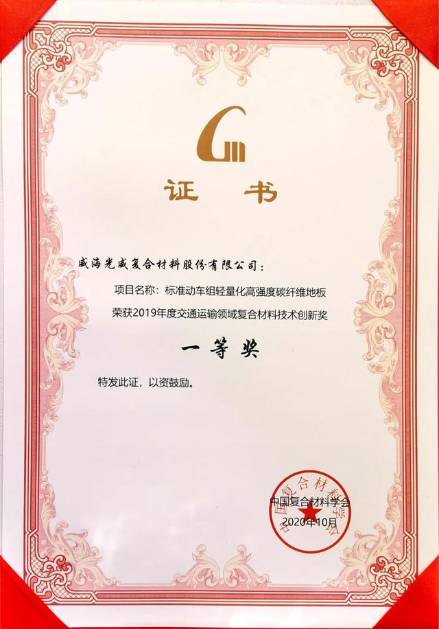 10月13日,第七届全国交通运输领域复合材料科技会议在西安开幕,会议同期举行2019年度交通运输领域复合材料技术创新奖颁奖仪式,光威复材标准动车组轻量化高强度碳纤维地板项目荣获一等奖。