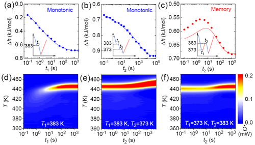 图1 单步和双步退火时,焓的弛豫规律,先低温后高温退火可能诱发反常弛豫行为——记忆效应