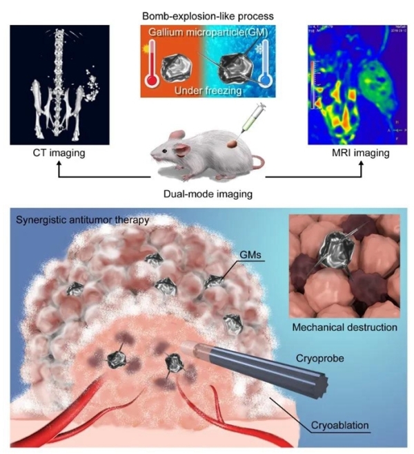 基于镓微米颗粒的低温消融与微爆破杀伤肿瘤协同治疗机制及在体双模态成像