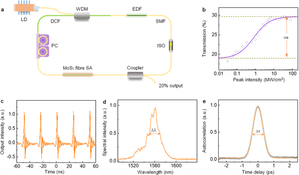图3.二硫化钼复合光纤光频转化应用