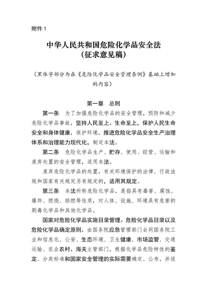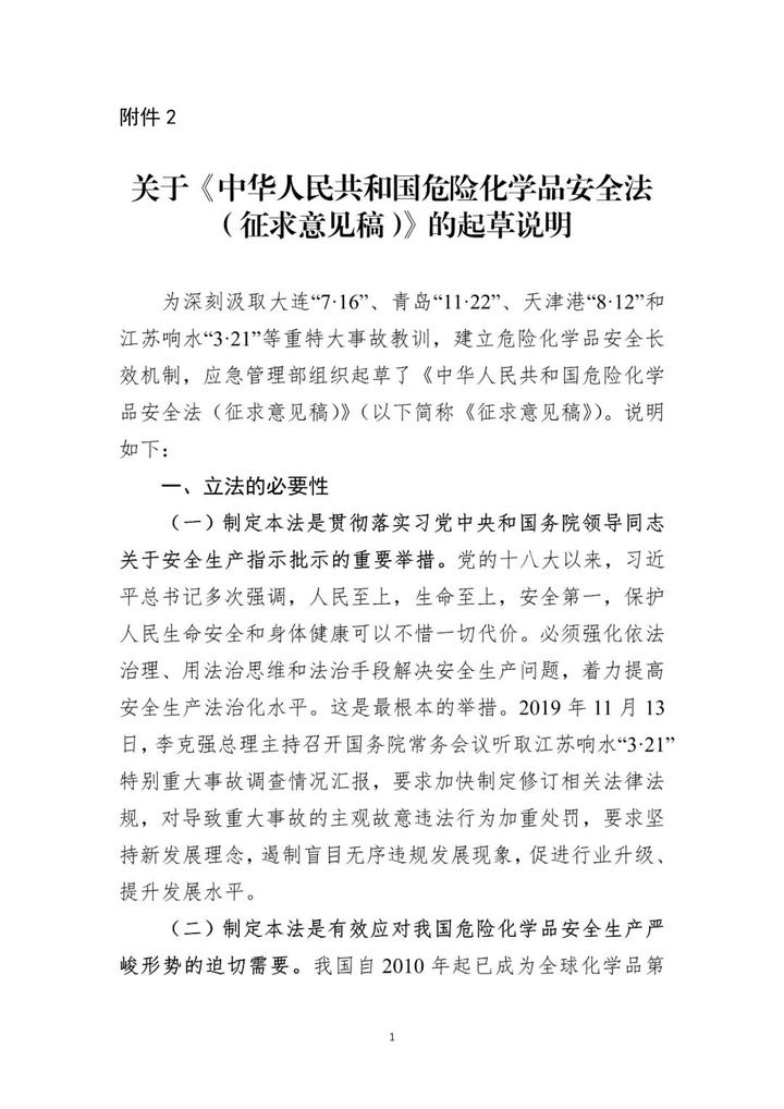 2.关于《中华人民共和国危险化学品安全法(征求意见稿)》的说明