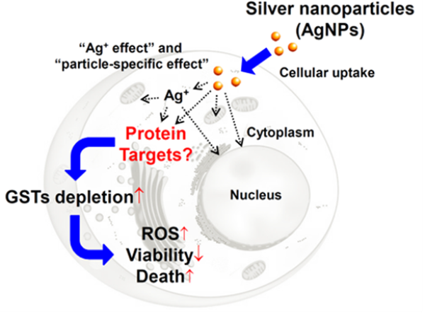 图一. 银纳米颗粒诱发细胞毒性机制的示意图