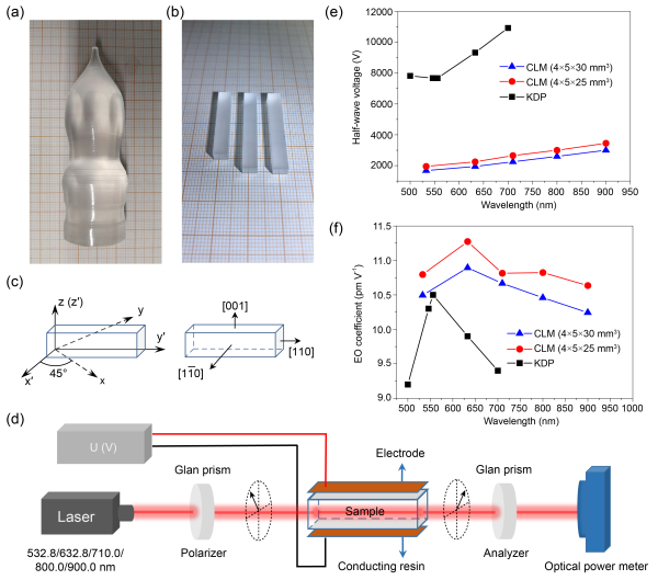 图2.CsLiMoO4晶体生长及其电光性能表征