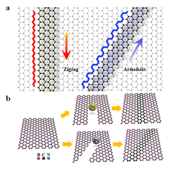 图1.嵌入h-BN中手性可控的GNR制备方法