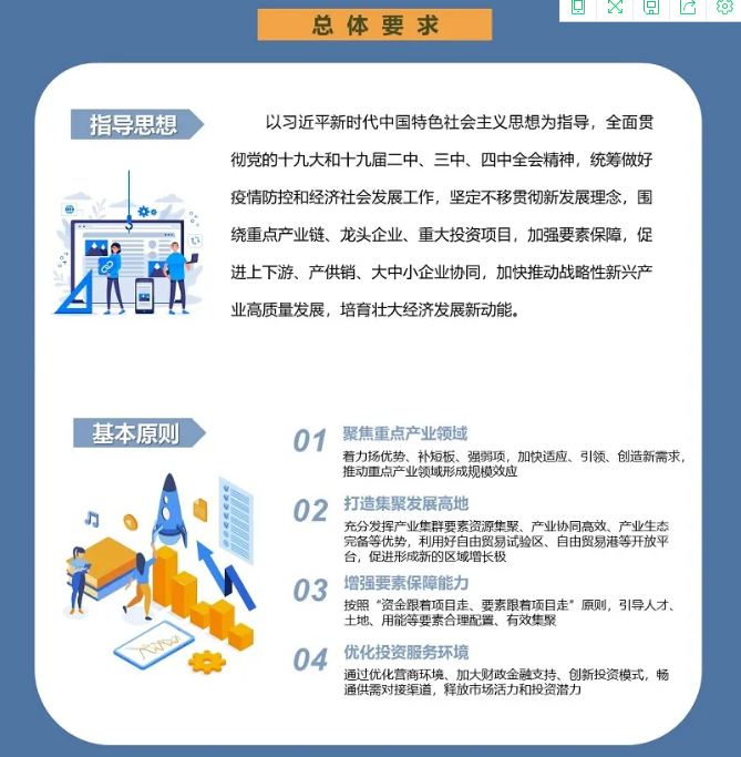 重点支持工业机器人、建筑、医疗等特种机器人、高端仪器仪表、轨道交通装备、高档五轴数控机床、节能异步牵引电动机、高端医疗装备和制药装备、航空航天装备、海洋工程装备及高技术船舶等高端装备生产,实施智能制造、智能建造试点示范。研发推广城市市政基础设施运维、农业生产专用传感器、智能装备、自动化系统和管理平台,建设一批创新中心和示范基地、试点县。鼓励龙头企业建设“互联网+”协同制造示范工厂,建立高标准工业互联网平台。