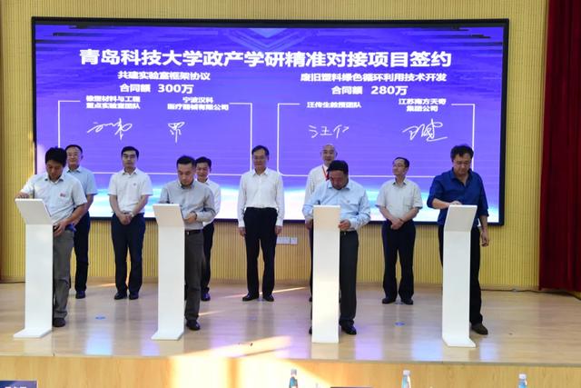 9月20日下午,青岛科技大学政产学研精准对接项目发布会在青岛科技大学市北校区(郑州路53号)尚舜讲学厅举行。青岛市委常委、统战部部长王久军出席会议并致辞。青岛科技大学校长陈克正,市北区委副书记、区长张永国,青岛科技大学副校长刘光烨、李志波,行业协会代表中国橡胶协会名誉会长范仁德等有关同志参加本次活动。