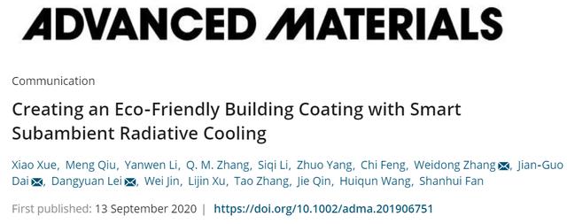 最近的理论和实验证明,亚环境日间辐射冷却(SDRC)是实现被动式日间冷却(PDRC,Science, 2018, DOI: 10.1126/science.aat9513)方面的突破。其中,PDRC是一种通过反射太阳光[波长(λ)~0.3-2.5 μm]并通过大气的长波红外(LWIR)透射窗(λ~8-13 μm),将热量辐射到冷的外部空间,表面自发冷却的现象。实际上,这种辐射效应是使人们在夏季夜晚呆在外面时感到寒冷的原因。然而,要想在阳光直接照射下产生同样的效果,这种材料必须克服阳光直接照射产生的热量。研究者利用各种方法来反射大部分阳光,以使太阳的热吸收低于辐射冷却的水平。但是,目前这些SDRC涂层的设计和制造都依赖于使用复杂的光子微结构、贵金属镜或危险的化学工艺等,极大地限制了其在大型建筑制冷领域的实际应用。