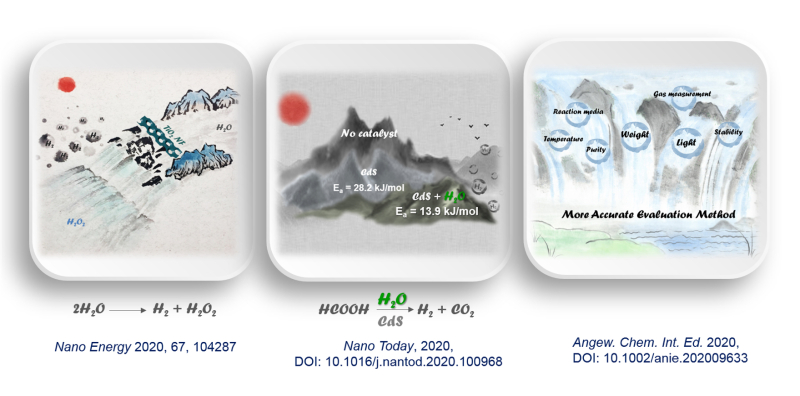 目前,工业制氢主要依靠煤、天然气重整,这个过程加剧了不可再生能源的消耗与环境污染。太阳能作为人类取之不尽用之不竭的可再生能源(约4×1020 J / h),通过光催化过程,将其转化为清洁高效的氢能,是解决上述问题的理想途径,近几十年来该领域的研究备受关注。朴玲钰课题组分别通过光催化水分解和甲酸分解两个过程,实现了高效、稳定的光催化产氢,并为该过程的合理评价提出了系统分析与建议。