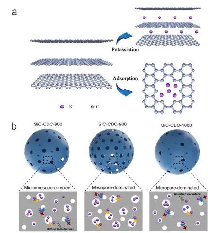 图2. 碳化硅衍生碳的储钾机理图。