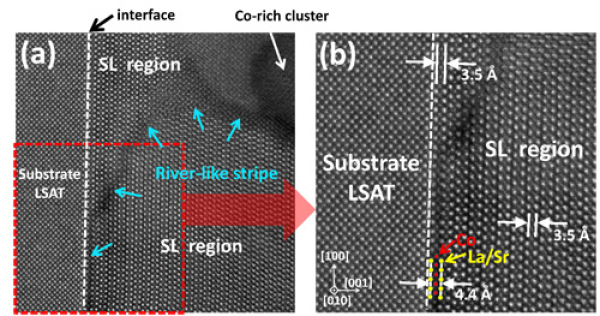 图3、214-LSCO/LSAT薄膜中的Co离子迁移通道-HAADF-STEM