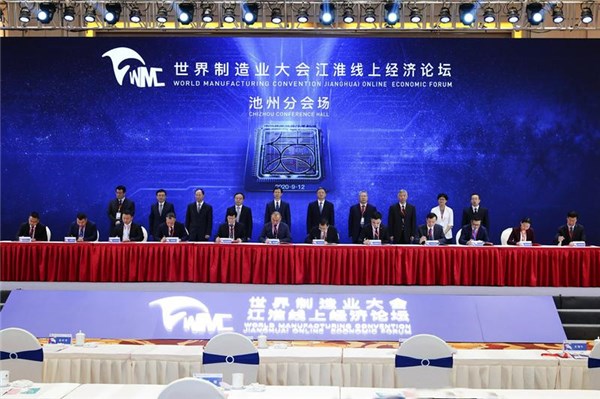 9月12日上午,世界制造业大会江淮线上经济论坛在合肥盛大开幕,省委书记李锦斌出席大会并致辞,省委副书记、省长李国英主持大会。本届大会以“线上经济赋能高质量发展”为主题,首次采用“云端”办会模式,举办云开幕、云论坛、云展示、云签约“四朵云”活动,并重点围绕科技创新、新兴产业、公共服务和“新基建”等领域,通过主会场与16个省辖市分会场视频连线的方式,同时签约一批重点项目。