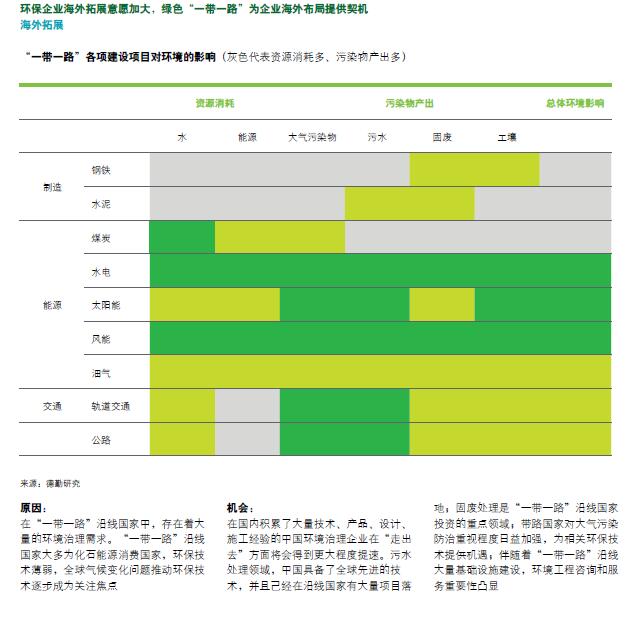 随着环保行业竞争加剧,技术优势成为环保企业可持续发展的关键,同时,环保企业海外拓展意愿加大,绿色“一带一路”为企业海外布局提供契机。