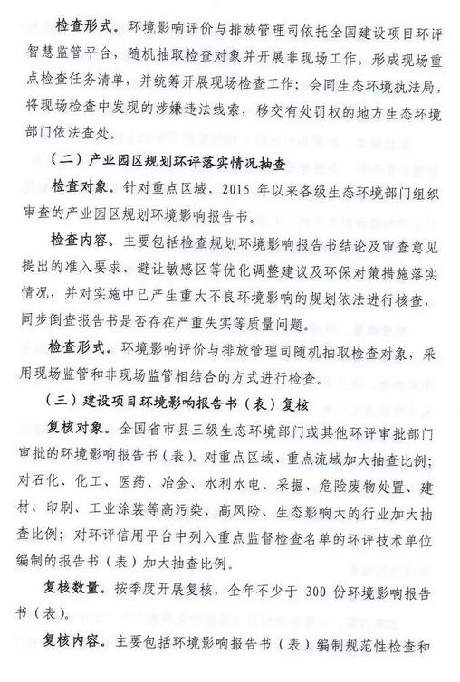 《行动计划》强调,各级生态环境部门要围绕“质量”和“落实”两个方面开展监管。针对建设项目环评,开展环评文件复核、环评文件及批复要求落实情况抽查,开展环境影响登记表项目环评合法合规情况抽查;针对规划环评,开展重点领域规划环境影响报告书落实情况抽查;针对排污许可,开展排污许可证核发、登记情况和执行情况抽查。