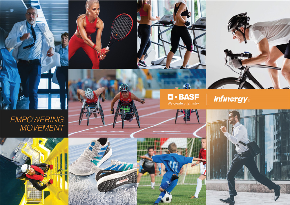 今日,巴斯夫发布旗下 Infinergy® 赢飞力™ 发泡热塑性聚氨酯(E-TPU)的全新品牌战略——“激发运动力Empowering Movement”,为赢飞力™ 打造全新品牌形象,展现运动力量。同时,巴斯夫启用现代虚拟展厅技术,展示赢飞力™ 的多领域应用和特性。