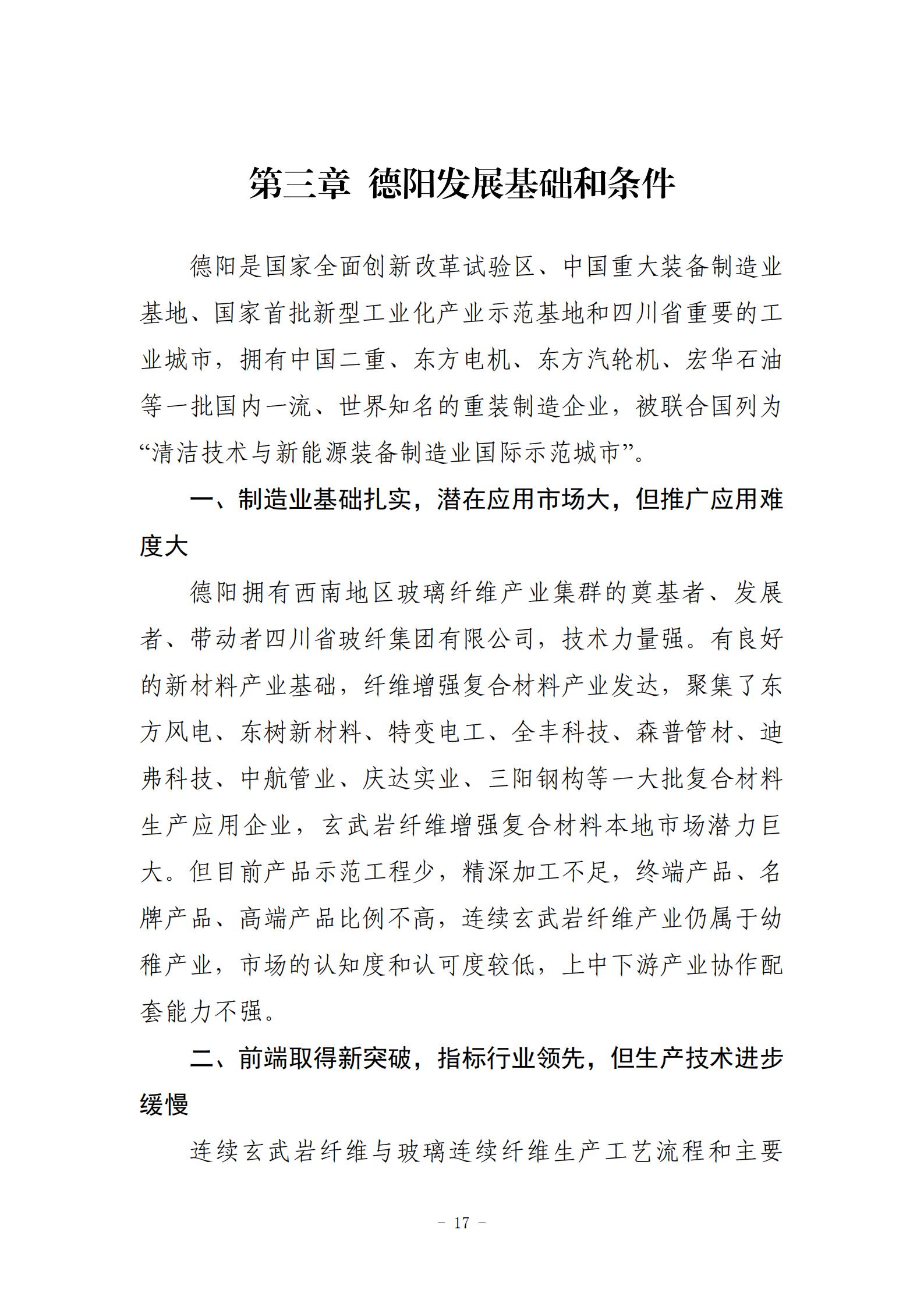 《规划》在分析玄武岩纤维产业国内外发展基础和发展环境上,对四川省德阳市玄武岩纤维产业未来(2020—2030)的发展,提出了战略定位、指导思想、发展目标、发展重点、主要任务和保障措施。