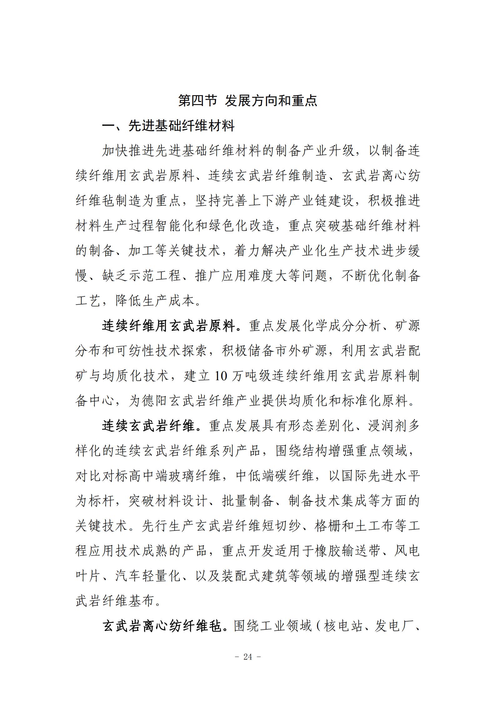 德阳市为全面推进玄武岩纤维产业发展,出台了《德阳市玄武岩纤维产业发展规划(2020-2030)》(以下简称“《规划》”)。