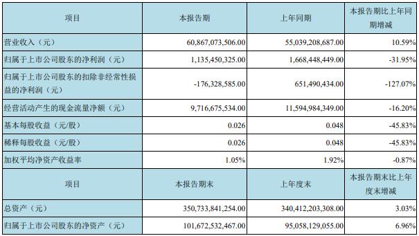 京东方今年上半年实现净利润11.35亿元,同比减少31.95%。