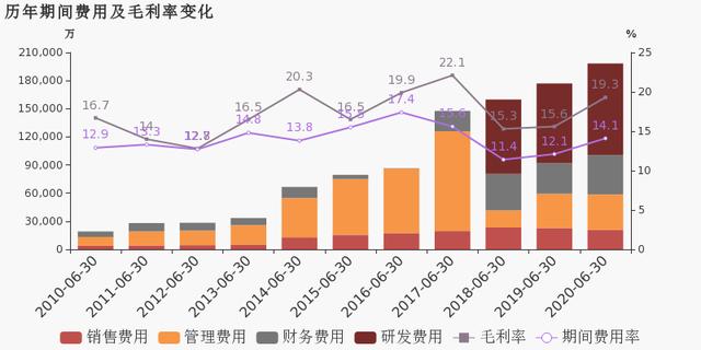 公司2020半年度营业成本113.4亿,同比下降8%,高于营业收入3.7%的下降速度,毛利率上升3.8%。期间费用率为14.1%,较上年升高2%。经营性现金流大幅下降58.1%至4.3亿。