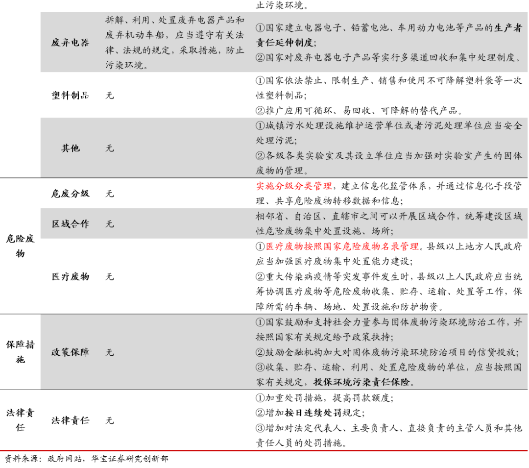 从具体内容上来看,相较于2016年修正版,新固废法新增垃圾分类、污泥、建筑垃圾、医疗废物、塑料制品等相关内容。