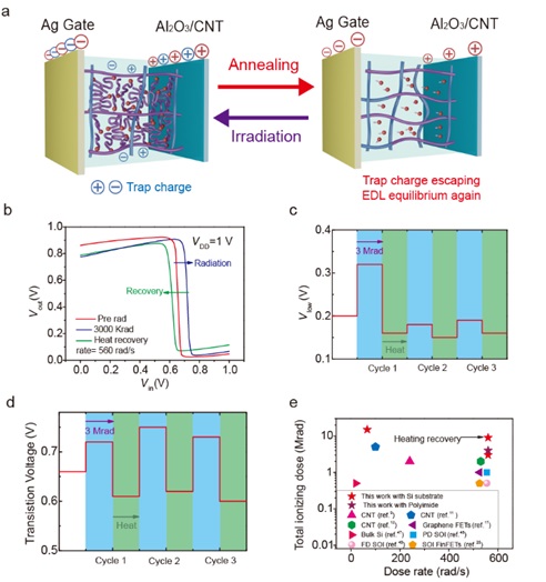 图3. 离子胶碳纳米管抗辐照晶体管和集成电路辐照修复效应