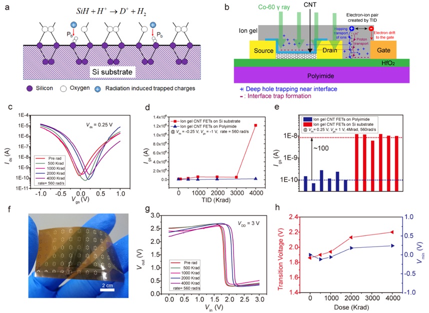 图2. 离子胶碳纳米管抗辐照晶体管和集成电路辐照加固机理