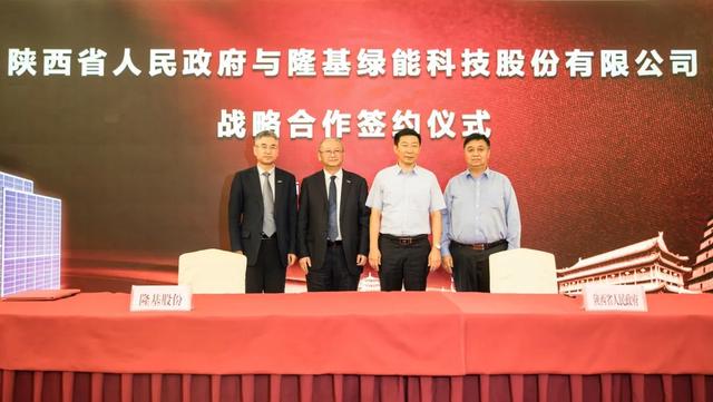 8月26日,陕西省人民政府与隆基绿能科技股份有限公司在西安签署战略合作协议,陕西省副省长赵刚、隆基股份总裁李振国出席签约仪式。