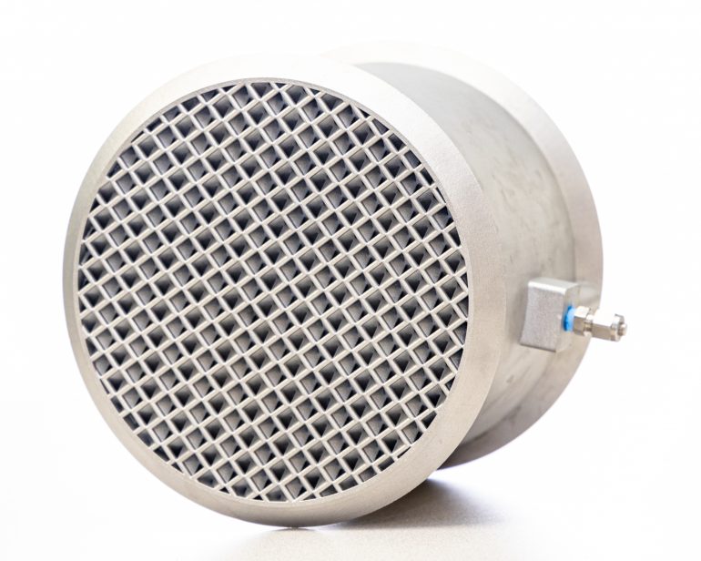 利用3D打印,ORNL团队创建了一个装置,将两个独立的功能结合到一起。ORNL团队使用铝材3D打印了他们的原型,并将该装置设计成在波纹片之间嵌入冷却剂通道。最终的多功能装置直径为20.3厘米,高度为14.6厘米,内部冷却剂通道的总体积为600毫升。