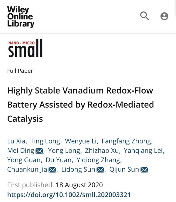 23日,记者从长沙理工大学获悉,该校丁美、贾传坤教授团队,联合重庆大学教授孙立东、中科院北京纳米能源与系统研究所研究员孙其君,及中科院金属研究所等多个科研团队,利用电沉积和氧化还原靶向催化交叉结合技术,共同开发出了一种大规模储能钒液流电池用的普鲁士蓝复合电极材料,可显著提高钒液流电池功率密度和能量效率。这种新型电极材料,有望助推钒液流电池“提质降本”,为其进一步商业化应用提供了新思路。目前,成果进入应用孵化阶段,这一研究成果也于日前发布于全球工程技术与材料类著名期刊《SMALL》上。