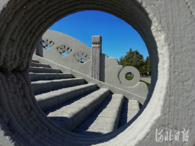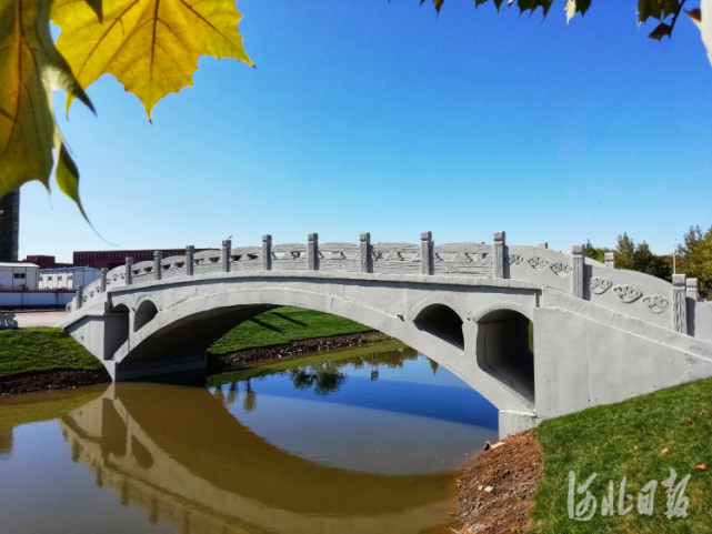 “除了建造技术的成熟和指标参数的严谨,我们在桥梁设计上特别强调文化回归。”马国伟说,这座建在校园的桥梁,以河北赵县赵州桥为原型,配以我校桃花堤的“桃花”纹样,是对河北工业大学厚重历史,更是对“河北文化”的致敬。