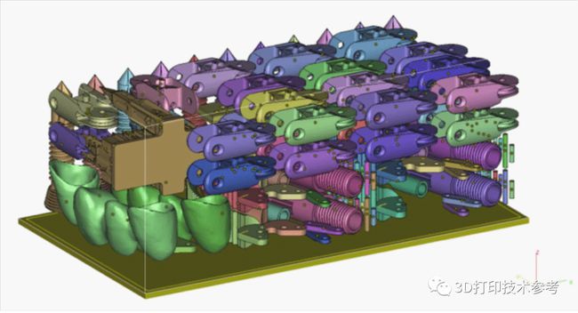 从打印过程的视频可以看出,材料为树脂和金属粉末的粘稠液体,类似浆料,但打印完成后却可以将材料整体取出,在对其加热后,非零件部分可以轻松与零件分离流出。