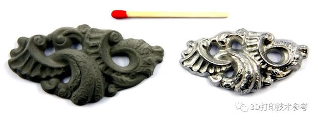 在《纯铜3D打印新工艺:采用DLP工艺实现99.99%的材料纯度》一文中,3D打印技术参考介绍了美国Holo公司利用高分辨率光学成像仪对纯铜粉和光敏树脂混合而成的浆料进行3D打印的技术,其结合已经非常成熟的金属注射成型(MIM)后端工艺,对打印后的生坯进行脱脂和烧结,最终生产出高性能零件。而MetShape公司无疑将该技术的应用领域进行了拓展。