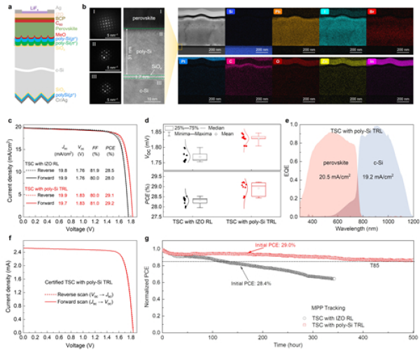 图4. 隧穿复合层增强钙钛矿顶电池载流子传输和提取能力的测试结果