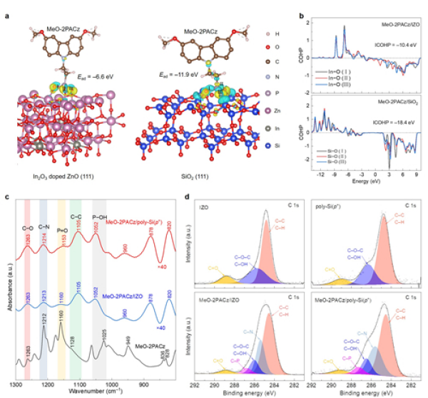 图3. MeO-2PACz吸附增强的理论和实验验证