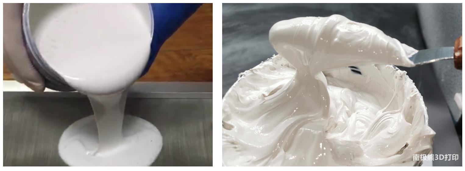△低粘度陶瓷材料(左图) 和高粘度陶瓷材料(右图)对比