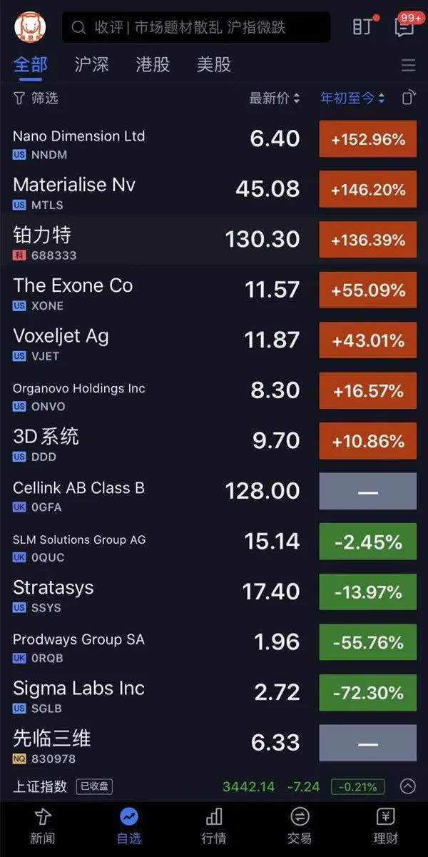 截至北京时间2020年12月3日,全球3D打印上市公司年内涨幅排行,总体趋势不错。