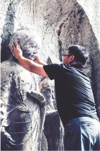 近日,在洛阳龙门石窟奉先寺北壁,一件按1:1比例3D打印复制的佛首造像,顺利安放在一尊等身立佛的残像上——佛首和残像的断面完全吻合,实现了造像的准确复位。