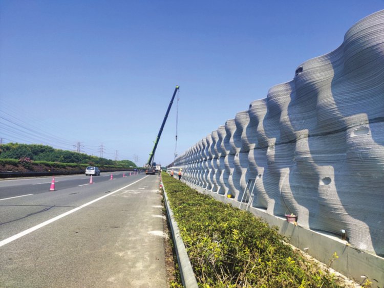 对此,绕城公司近年来在周边居民比较集中的路段已累计完成声屏障建设达17公里。针对传统声屏障建设中存在的建设周期长、资金需求高、易老化等弊端,从2019年12月开始,绕城公司积极探索新工艺、新技术在声屏障领域的运用,引入3D打印技术,当年试点完成了70米先导段的建设,2020年以来又在S58沪常高速K14附近开工建设长370米的3D打印声屏障。