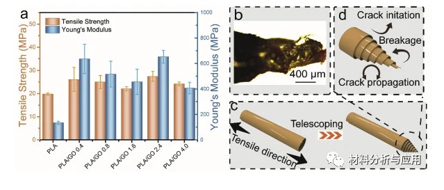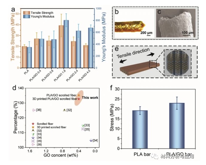 图6。3D打印的PLA / GO滚动纤维的机械特性