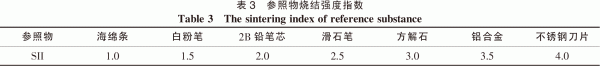 2)当烧结强度指数SII>1时(即用海绵条划不动时),参照莫氏硬度法,参照物SII值见表3。