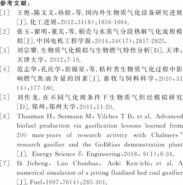 我国秸秆能源丰富,据调查研究数据显示我国每年的秸秆农作物废弃物有十亿吨,实施秸秆清洁能源利用工程,对于促进能源系统的转型具有重要的现实意义[1],而加快清洁能源工程建设是一个十分重要的研究课题。固定床秸秆气化炉在我国的应用较为广泛,其中固定床下吸式气化炉操作方便且具有良好的工作稳定性[2],但在使用过程中,仍然需要解决系统效率低的问题[3]。秸秆热解气化反应十分复杂,采用数值模拟方法既可以很容易地获得流场中的数据,又可以引导实验测量[4-5]。Fluent软件主要用于分析流体流动与传热特性等,能够快速准确地得到模拟结果[6-7]。但目前很少有人利用Fluent软件对秸秆的燃烧和气化进行动力学模拟分析。本文采用该软件,对下吸式秸秆气化炉进行流场分析。