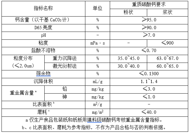 填料级碳酸钙的技术指标要求(QB/T2811-2019造纸用碳酸钙) [4]