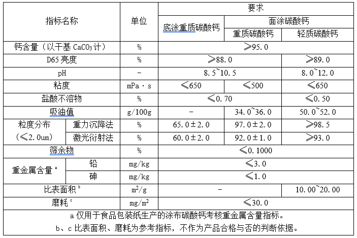 涂布级碳酸钙的技术指标要求(QB/T2811-2019造纸用碳酸钙)[4]、